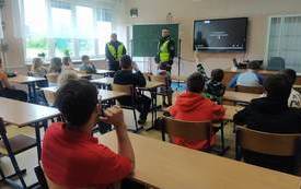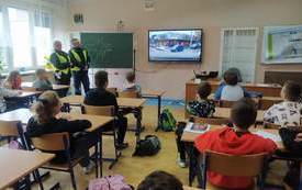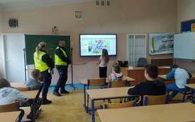 PRZYGOTOWANIE DO EGZAMINU NA KARTĘ ROWEROWĄ! W naszej szkole bardzo ważną rolę przywiązujemy do bezpieczeństwa uczniów. Każdego roku uczniowie, którzy kończą 10 lat przygotowują się do zdobycia Karty Rowerowej – pierwszego prawo jazdy. W piątek uczniowie klasy 4 i 5 wzięli udział w spotkaniu przygotowującym do egzaminu na Kartę Rowerową . Spotkanie poprowadzili funkcjonariusze Wydziału Ruchu Drogowego z Powiatowej Komendy Policji w Ostrowcu Świętokrzyskim mł. asp. Karolina Fryc, mł. asp. Cezary Zieja wraz z p. Lidią Szeląg nauczycielem techniki w naszej szkole. Podczas spotkania uczniowie szlifowali wiadomości z: przepisów ruchu drogowego dotyczące pieszych i rowerzystów, rodzajów skrzyżowań oraz zasad przejazdu przez nie, podstawowych manewrów w ruchu drogowym, obowiązkowego wyposażenie roweru. Uczniowie z niecierpliwością czekają na kolejne spotkanie praktycznej jazdy rowerem po Miasteczku Rowerowym w Parku Miejskim. BĄDŹ BEZPIECZNY NA DRODZE!!! DBAJ O BEZPIECZEŃSTWO SWOJE I INNYCH!!! WARTO ZAJRZEĆ NA PONIŻSZE STRONY: