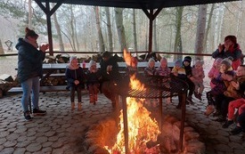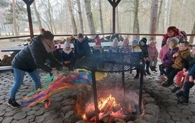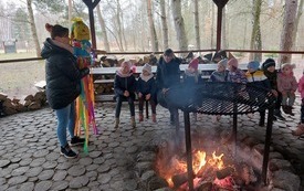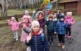 I duzi i mali, na wiosnę czekali. Aż tu niespodzianka, bo któregoś ranka, przyszła WIOSNA do lasu, narobiła hałasu! 21 marca przedszkolaki wyruszyły do pobliskiego lasu przywitać długo oczekiwaną WIOSNĘ . Dzieciaki z uśmiechem na twarzy dzielnie wędrowały po lesie szukając jej pierwszych oznak . W zaprzyjaźnionej lesniczówce Zwierzyniec milusińscy spotkali się z Panią i Panem lesniczym. Nie zabrakło wspolnych zabaw na świeżym powietrzu. Przedszkolaki przegoniły zimę paląc wcześniej przygotowana Marzannę oraz przywitały WIOSNĘ